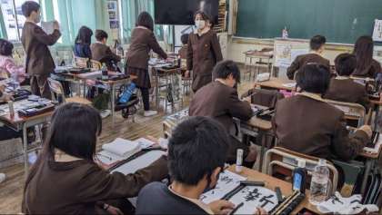 書写「書き初め」毛筆で丁寧に字を書いていました。