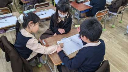 自分の考えをプリントに表し、友だちと交流していました。