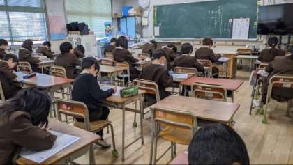 「自己紹介カードを書こう」自分を知ってもらうためのカードを作成していました。
