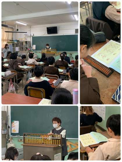 今日は、4年生が地域の方にそろばんを教えていただきました。