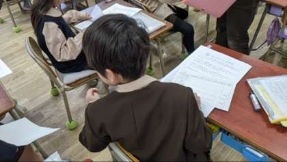 「キッズチャレンジ週間にむけて」プリントを配ってもらい、今年度最後のキッズチャレンジに向けて、ポイントを聞いていました。