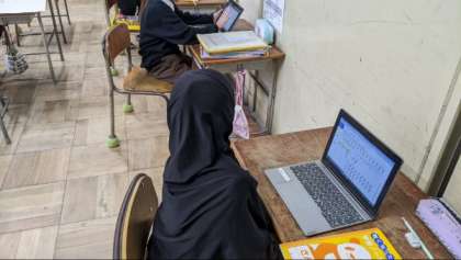 「タブレット端末を使って」端末のアプリを使って学習していました。