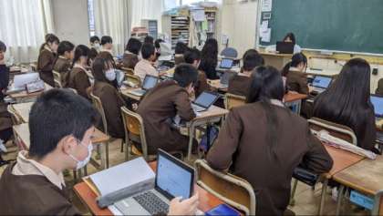 「タブレット端末を使って」アンケートに回答していました。
