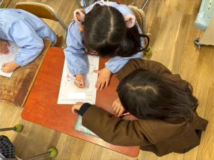 座り方や鉛筆の持ち方を教えてあげたり、一緒に歌を歌ったりしました。