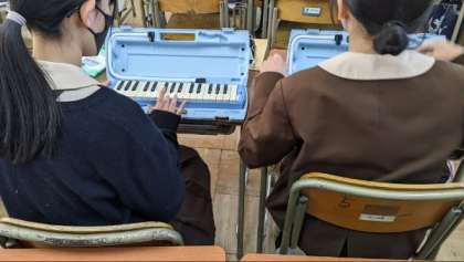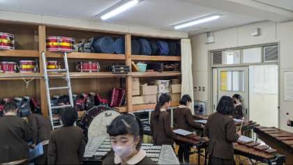 音楽「合奏」いろいろな教室に分かれて、各パートごとに集まり、練習をしていました。