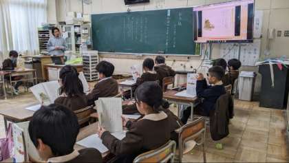 国語 それぞれの教室で、先生や友達と考えを交流していました。
