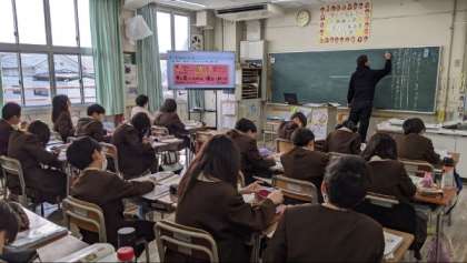 国語「資料を見て考えたことを話そう」資料からわかることとそこから自分が考えたことを分けて考える学習をしていました。