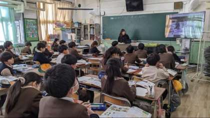 外国語「コミュニケーションをとろう」友だちと外国語でやりとりをしていました。