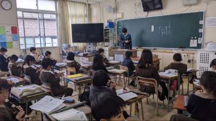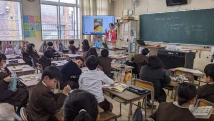 先生から動物の特徴をクイズ形式で伝えられ、どんな動物か考えていました。