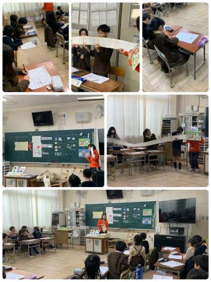 カルシウムのはたらきやカルシウムを含む食べ物のお話を聞いたり、給食とファストフードのカルシウム量の違いを知ったりしました。