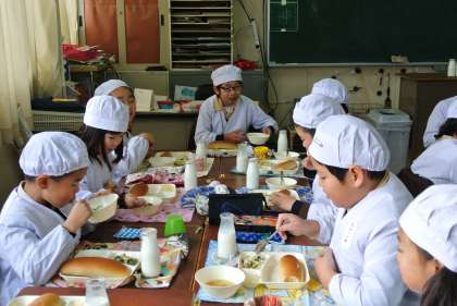 給食調理員さんも保健室の先生も校長先生も学級で食べました。