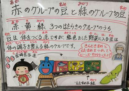 今日は、チキンカレーライス、ビーンズサラダ、いちご、牛乳でした。カレーには可愛らしい形のラッキー人参も用意しました。