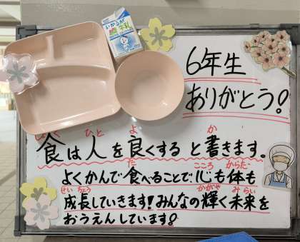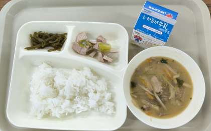 今日はまぐろの甘辛焼き、豚汁、茎わかめのつくだ煮、ご飯、牛乳でした。返却の時に「6年間ありがとうございました!」と声をかけてくれる6年生もいました。