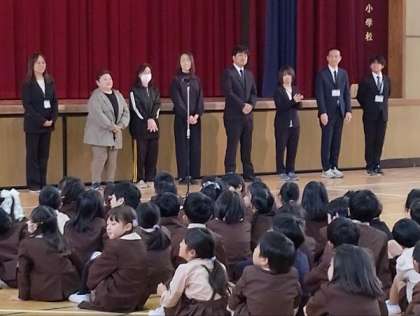 今年度、大宮小学校に来られた教職員を子どもたちに紹介しました。