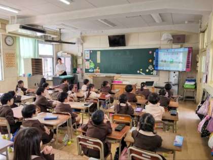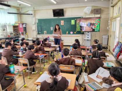 大型テレビを活用して学習していました。