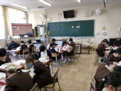 国語の学習で意味調べをしたり、場面について考えたりしていました。