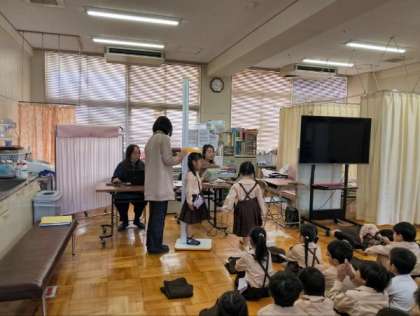 発育測定やひらがなの学習をしていました。