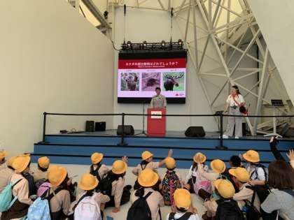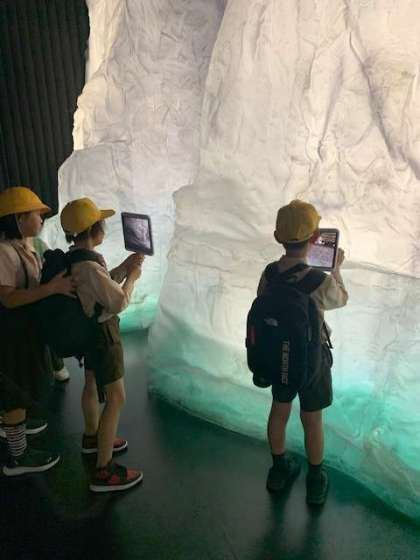 氷山にタブレットをかざすと、あら不思議、森や川、カナダの風景が映し出されます。