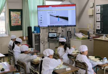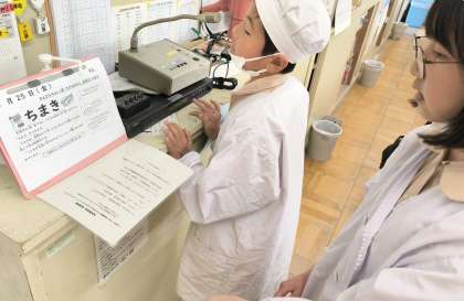 大阪市の子どもの日の行事献立にはちまきが登場します。初めて食べる子も多く笹の香りを楽しんだりちまきを上手にむいてキレイに小さくたたんでいる子もいました。みんなの健康と成長を願っていただきます。