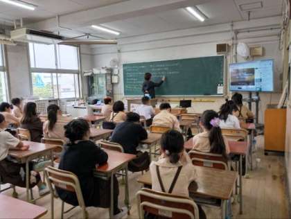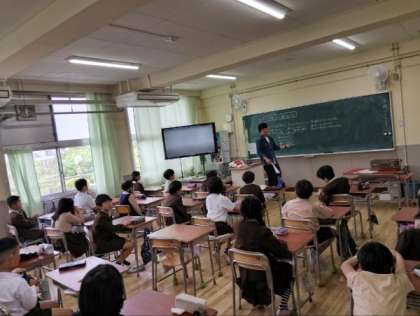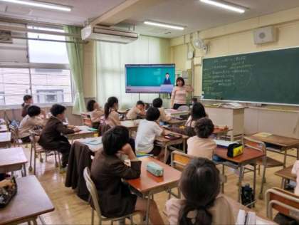 大型テレビを使って、いのちやいじめについて考えていました。