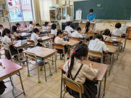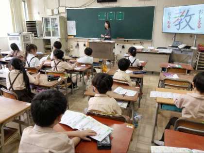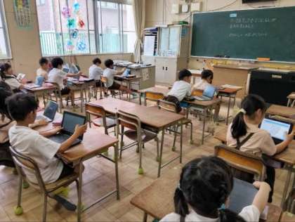 国語やタブレット端末を使って学習していました。