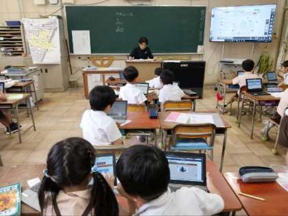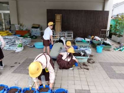 タブレット端末を使って学習したり、野菜を植えたりしていました。
