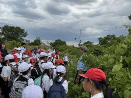 淀川の環境についてお話を聞いたり、実際に淀川に入って生き物を見つけたりしました。