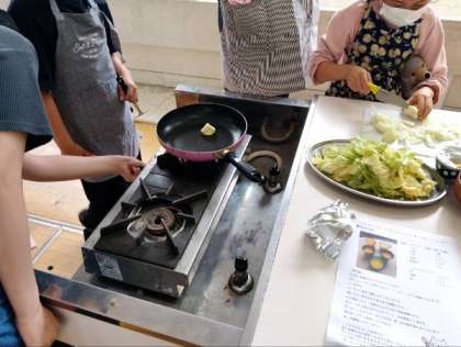 野菜を切ったり、フライパンで炒めたり、みんなで協力して、作ることができました。