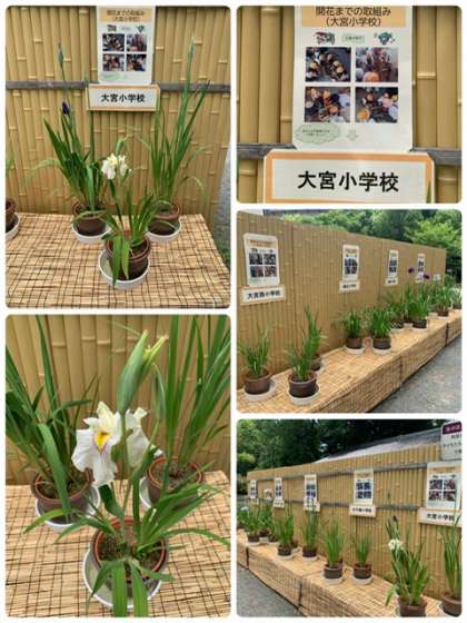 大宮小学校で育てた花しょうぶが、城北公園菖蒲園に展示されています。
