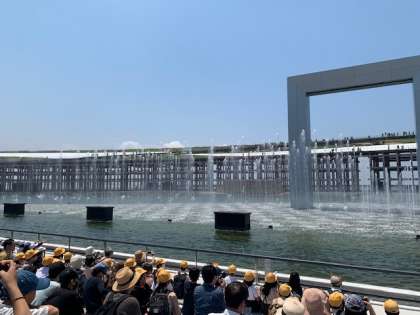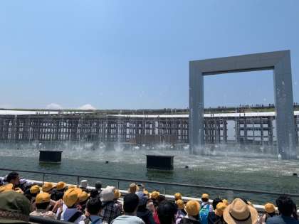 噴水ショーを楽しんでいます。