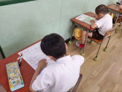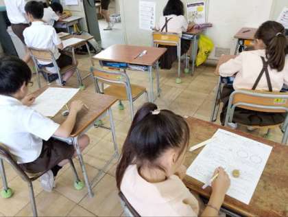 テストに取り組んだり、□をつかった式の学習をしたりしていました。