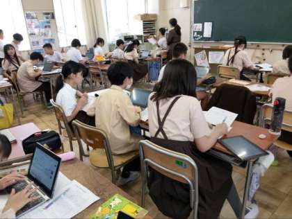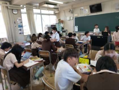 タブレット端末を使って学習したり、グループでまとめたりしていました。