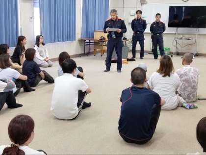 旭消防署の方に来校いただき、講師を務めていただきました。