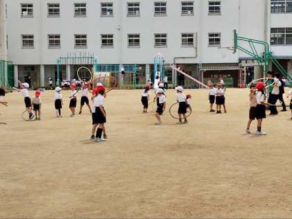 フラフープを使ったり、固定遊具を使ったりと元気いっぱい体を動かしていました。