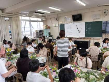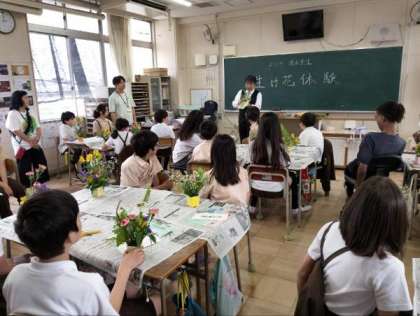 華道の先生に来ていただき、6年生向けに生け花体験を実施しました。