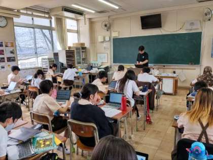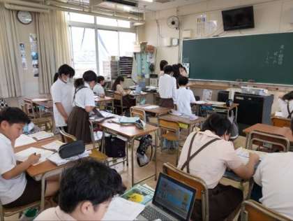 タブレット端末では、調べ学習をしたり、パワーポイントを使ったりして学習していました。