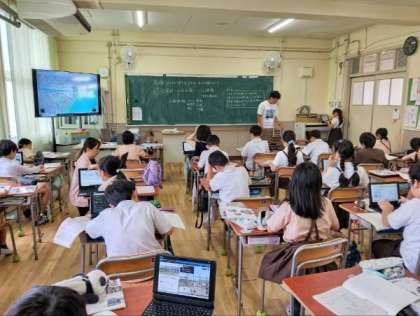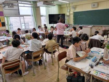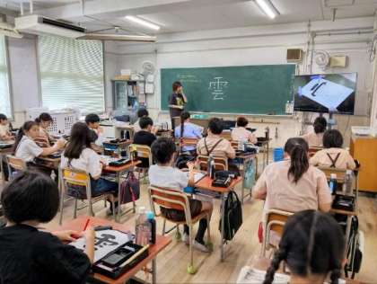 動画でポイントを確認しながら、毛筆の学習をしていました。