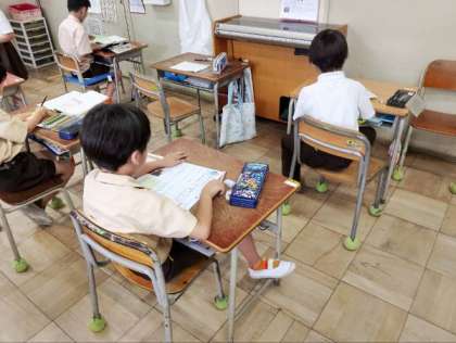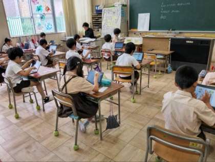 テストや国語、タブレット端末を使って学習していました。