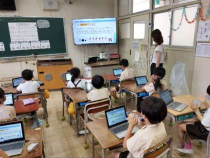 タブレット端末を使って、リズムをつくったりしていました。