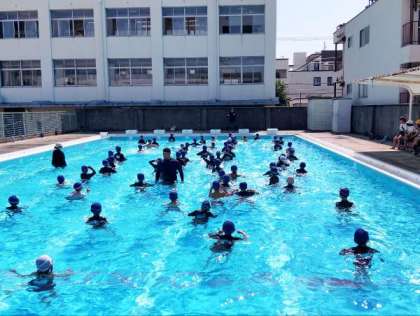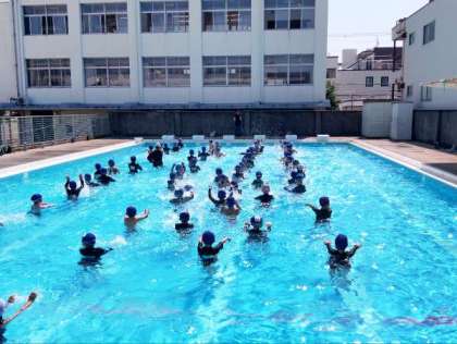 楽しくプールでの学習に取り組んでいました。