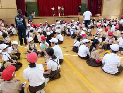 爆弾に見立てたボールを隣の人に回していき、音楽が止まったときにボールを持っている人が、好きな〇〇を発表する、というものでした。