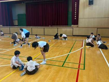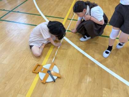 グループで協力して、クルマがどれだけ動いたのか測定していました。