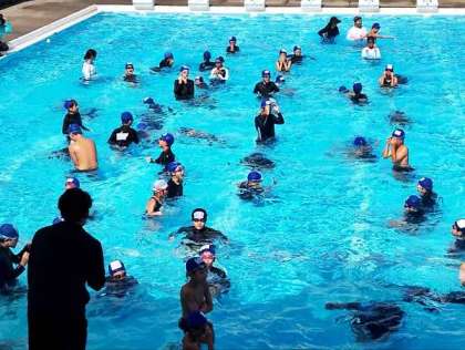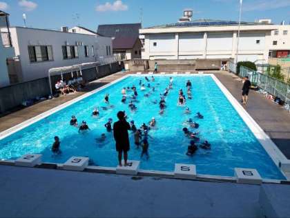 水慣れをしてから、泳力を高める学習に取り組みました。
