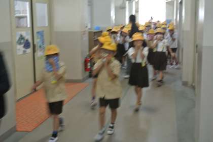 今日の2時間目に、避難訓練を行いました。今回は、火災が発生したときを想定して、緊急時の行動を確認し、安全で迅速な行動ができるように、訓練をしました。子どもたちは、しゃべらず、迅速に行動し、運動場に避難することができました。