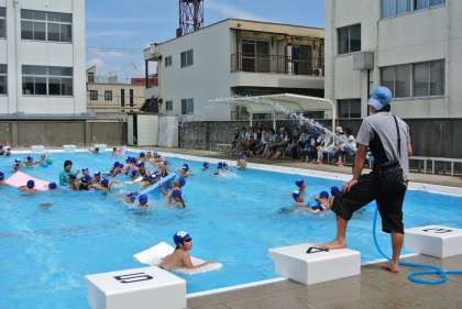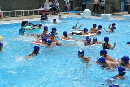 後半の部、プール遊びです。これが楽しみだった人も多かったのではないでしょうか。今まで暑くて大変だったことも、吹き飛ばして楽しくわいわいと遊んでいました。
