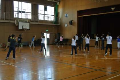大宮小学校は、「体力向上」を教育の1つの柱として取り組んでいます。どのようにすれば楽しく子どもたちが運動に取り組めるか、身をもって学習することができました。いい汗をかきました。