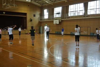 夏休みの学習会パート2です。今日は、体育の研修を行いました。2本立てです。