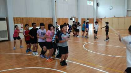 ウッドクラフトの後、時間が少しあったので、体育館で大縄大会をしました。グループ対抗、クラス対抗、ともに息を合わせて頑張りました。