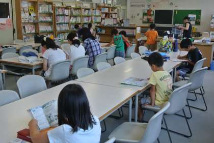 図書館開放もプール開放と同様に、8月3日(水)まで行っています。プール開放の前後に利用するなど、どんどん活用して、たくさんの本に親しんでくださいね。