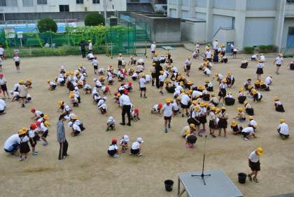 また、児童朝会の後、運動場の石拾いをしました。運動会の練習も始まっており、けがのないようにということで、みんなで実施しました。